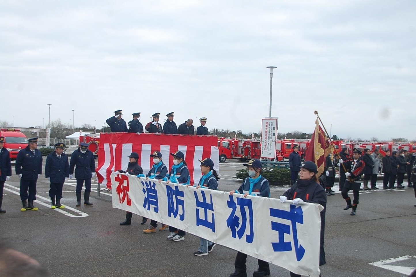 1年を通して、射水市消防署消防団と連携しさまざまな消防イベントに参加し、クリスマスや年末も巡回車に同乗し地域住民に防火を呼びかけました。年始には射水市消防出初式に参加し、2026年も学生消防団としての役割を果たすべく、気持ちが引き締まりました。